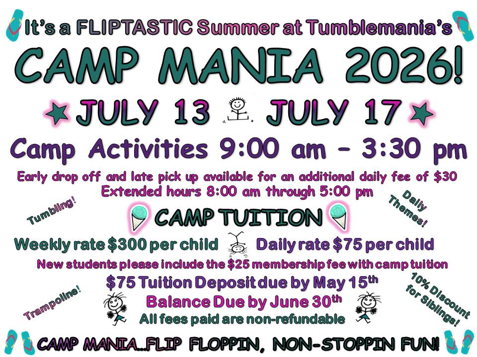 FLIP INTO THE NEW YEAR AT TUMBLEMANIA!! WE ARE TAKING REGISTRATION!